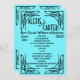 Inspiré par les affiches de vaudeville des années 20, ce design noir sur turquoise très lumineux surprendra et ravira vos invités !