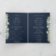 Un programme de mariage d'hiver plié par la marine noire / ordre de cérémonie. Doté de baies de neige peintes à la main et d'eucalyptus et d'une dispersion de points. Tout le texte est entièrement modifiable. Veuillez consulter cette collection dans mon magasin pour des programmes avec des formulations et des formats différents et de tailles/couleurs/formes différentes. Coordonner les éléments également disponibles.