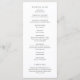Programme de mariage blanc classique avec "bienvenue" dans un script délicat. Utilisez le modèle pour ajouter facilement votre ordre de cérémonie au devant et à votre fête de mariage et un message de remerciement au dos. Une disposition simple sans aucun graphisme en fait un design élégant et intemporel, parfait pour un mariage formel.