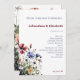 Guidez vos invités à travers votre journée spéciale avec ces magnifiques programmes de mariage fleur sauvage d'aquarelle. Décoré de fleurs bohème douces, de fleurs bohèmes délicates et d'accents botaniques gracieux, ce design apporte une touche fraîche et romantique à votre cérémonie. L'élégante disposition associe la typographie moderne à une touche féminine et artistique, créant un mélange harmonieux de sophistication et de charme boho. Avec les détails de votre cérémonie de mariage dans un format clair et élégant, ce programme est un gardien parfait qui complète votre thème de mariage bohème de printemps avec élégance naturelle et détails chaleureux.