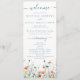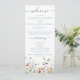Ce design comporte une bordure de fleurs sauvages dynamiques dans les tons rouge, jaune, vert, turquoise et bleu. Parfait pour les mariages d'été décontractés.