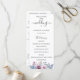 Fleurs et feuillage aquarelle bleu poussiéreux et mauve élégants, programme de mariage. Le programme présente une accentuation calligraphique mignonne "mariage" avec plusieurs lignes pour des listes de texte personnalisées pour l'ordre des événements de la cérémonie, le cortège de mariage et le mot de remerciement.