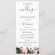 Élégant bleu marine, fleurs aquarelles bordeaux et rose poudré et feuillage, programme de mariage. Le programme comporte une calligraphie mignonne "mariage" avec plusieurs lignes pour des listes de texte personnalisées pour l'ordre des événements de la cérémonie, le cortège de mariage et la note de remerciement.