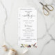 Fleurs et feuillage aquarelle rose et prune, programme de mariage. Le programme présente une calligraphie mignonne "mariage" avec plusieurs lignes pour des listes de texte personnalisées pour l'ordre des événements de la cérémonie, la fête de mariage et la note de remerciement.