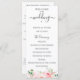 Fleurs aquarelles rose pâle élégantes et feuillage vert délicat, programme de mariage. Le programme présente une calligraphie mignonne "mariage" avec plusieurs lignes pour les listes de texte personnalisées pour l'ordre des événements de la cérémonie, le cortège de mariage et le mot de remerciement.