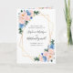 Ces programmes de mariage présentent un design floral aquarelle avec des fleurs roses bleues et rousses, un feuillage d'eucalyptus et un cadre géométrique en faux or. Personnalisez-les avec votre texte. Produits correspondants disponibles.