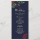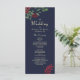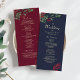 Élégant programme mariage de automne avec florale d'aquarelles bordeaux, bleu marine et vert. Parfait pour les cérémonies d'automne, ce programme recto verso comprend des détails de cérémonie sur le devant et des informations de mariage avec une note de remerciement sur le dos. Une touche design et pratique pour votre journée mariage de automne.