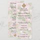 Un élégant programme de mariage floral décoratif présentant un motif floral aux teintes pastel douces en arrière-plan avec tous les détails personnalisés sur le recto et le verso. En haut de la face avant de la carte se trouve un magnifique bijou doré et émeraude (imprimé uniquement) et en bas au dos se trouve une paire d'alliances dorées. Vous pouvez voir la gamme complète de papeterie de mariage que ce programme a été créé pour assortir ici : https://www.zazzle.com/collections/golden_jewelled_floral_wedding-119090569795072593