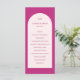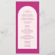 Programme de mariage moderne avec votre monogramme ainsi que votre ordre de cérémonie et de mariage à l'intérieur d'une arche rose vif sur un arrière - plan magenta dynamique. Ce design simple mais élégant aux couleurs vives et audacieuses conviendra parfaitement aux mariages d'été.