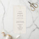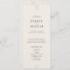 Ce programme de mariage art déco raffiné de la collection Everly présente une typographie noire minimaliste et des accents de ligne or sur un arrière - plan crème douce. Il est parfait pour un look élégant et intemporel. Inclure les noms du couple, la date et l'emplacement du mariage, un message de remerciement, l'ordre de service, la fête de mariage et un mémorial optionnel "en mémoire d'amour".