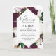 Ce programme de mariage plié aux fleurs mauves est parfait pour un mariage moderne. L'élégant design floral présente des fleurs de tulipe violet et blanc de prune foncée avec des feuilles vert émeraude et des accents de feuilles d'or.