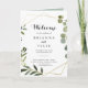 Ce programme de mariage géométrique doré vert tropical plié est parfait pour un mariage simple. Le design présente de beaux feuilles verts peints à la main, ornant un cadre géométrique doré. Incluez un devis ou un court message, une commande de service, une fête de mariage et un message de remerciement.