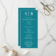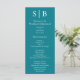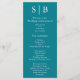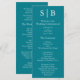 Le programme de mariage turquoise monogrammé classique comprend l'information de la fête de mariage.