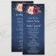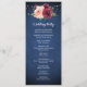 Ces programmes élégants de cérémonie de mariage comprennent des roses roses et bordeaux à aquarelle fleurie, du feuillage et des lampes à cordes sur un arrière - plan bleu marine. Le devant de la carte a la cérémonie et le dos de la carte liste la fête de la mariée. Ces programmes de mariage font partie d'une collection qui comprend une gamme complète de papeterie mariage correspondante que vous pouvez personnaliser pour votre mariage. Visitez notre magasin ou consultez nos pages de collection pour voir la gamme complète.