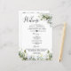 Ce programme de mariage est doté d'une touche élégante avec un script de calligraphie moderne et magnifique avec un texte régulier accompagné d'une aquarelle d'eucalyptus verdure feuillage feuilles. Habille-le avec ta propre image sur le dos et wow ton invité. Vous pouvez personnaliser le texte et customiser le nom, la date et l'emplacement des couples ainsi que les détails du programme. Remarque : l'arrangement feuille verdoyant avec l'illustration de ligne ne peut pas être modifié, modifié ou supprimé. Vous ne pouvez changer que la couleur des élégants mots calligraphiques de "Mariage", "La Cérémonie", "Merci", "La Fête du Mariage" et de l'oeuvre d'art de l'anneau mariage. Vous pouvez customiser le programme quand vous le souhaitez.