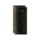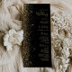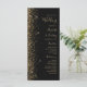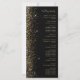 Le bord gauche de cet élégant programme de mariage moderne présente une conception de parties scintillant en faux or. Le texte personnalisable combine écriture manuscrite couleur or pâle, cuivre et polices italiques sur un arrière - plan noir.