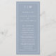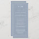 Programme de Mariage moderne avec un design simple mais élégant avec une disposition traditionnelle. Votre monogramme de deux lettres est en haut avec vos détails entourés d'une mince bordure. Tous les éléments de conception sont blancs sur un arrière - plan bleu poussiéreux et peuvent être changés dans l'outil d'édition de conception. Un design minimaliste à l'ambiance classique qui conviendra à un mariage formel.