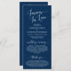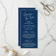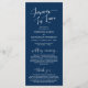 Élégant script bleu marine romantique moderne, carte de programme de cérémonie des Mariages. Il est conçu avec un accent de défilement qui peut être personnalisé avec du texte personnalisé/personnalisé pour votre fête de mariage, les détails de cérémonie, des notes commémoratives et un message de remerciement. Si vous cherchez d'autres types et tailles de cartes de programme, veuillez consulter notre section de collecte de cartes de programme correspondant.