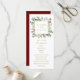 Ce programme de mariage présente de l'eucalyptus peint à l'aquarelle, des feuilles vertes, des baies rouges, des branches de pin et un cadre carré en or faux avec un fond rouge au dos. Pour une personnalisation plus avancée de ce design, veuillez cliquer sur le lien "Personnaliser davantage". Des articles assortis sont également disponibles.