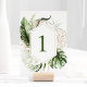 Les cartes de numéro de table à thème tropicale arborent un motif aquarelle de verdure, des fleurs exotiques roses douces et des accents d'or. Parfait pour une plage élégante, destination ou luau thème mariage ou douche nuptiale. Les cartes mesurent 5" x 7" et sont recto-verso, de sorte qu'elles peuvent être facilement vues sous tous les angles. Imprimés sur un carton épais, ils peuvent être utilisés avec ou sans cadre.