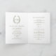 Programme de mariage d'art botanique à feuilles ovales vert olive dessiné à la main. Design simple de feuilles entourant vos propres initiales monographiques en vert olive et blanc. Autres couleurs et articles mariages correspondants disponibles. © Dessin et dessin de la feuille d'origine par Sarah Trett pour www.mylittleedenweddings.com sur zazzle.