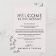 Ces cartes de bienvenue en typographie florale et d'itinéraire sont parfaites pour un mariage élégant. Le design romantique présente une écriture simple ornée de fleurs, une bordure botanique et un fond rose pâle subtil. Le recto de la carte présente une lettre de bienvenue et le verso présente l'itinéraire du mariage. Ces notes sont parfaites pour les mariages de destination et les sacs de bienvenue pour les invités d'hôtel.