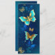 Or volant, papillon bijoux sur arrière - plan textuel bleu. Conception avec papillons.