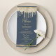 Cette luxueuse parties scintillant moderne minimaliste mauve bleu et or goutte le Mariage frontière Menu Invitation est inspiré par la simple et élégant a été mais avec des touches subtiles d'influence moderne. Il dispose d'une parties scintillant dorée goutte-à-goutte bordé d'un simple arrière - plan bleu foncé. Ce design classique et luxueux fera le bonheur de tous les clients. Tous les dessins sont imprimés.