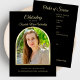 Ce charmant programme de funérailles présente la photo de votre proche sur la couverture à l'intérieur d'une arche avec un cadre de couleur dorée. Les mots "Célébration de la vie de (NOM)" apparaissent au-dessus de votre photo. En dessous de votre photo figurent les dates et les mots de souvenir affectueux que vous pouvez ajouter. Au verso, se trouve l'ordre du service que vous pouvez personnaliser pour votre événement particulier. Veuillez simplement prendre soin de vous assurer que tout tient dans l'espace prévu, car il s'imprimera exactement comme vous le voyez sur votre écran. Vous pouvez également personnaliser un remerciement de la part de la famille. copyright Sympathy Thank You de Kathy Henis