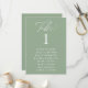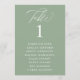 Programme Plan de table à numéros en calligraphie vert sauge