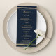 Une machine à écrire à thème bleu marine et or vintage avec typographie de police or style rustique Mariage invitations Menu.Est parfait pour toute fille raffinée et sophistiquée ou n'importe qui. Ce design est idéal pour un événement de fête branché et élégant. Customisez cette conception avec votre message et des informations personnalisées. Tous les dessins sont imprimés.