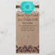 Le dessus a une marguerite turquoise couleur turquoise bleu gerbère sur un motif imprimé dentelle et ficelle. L'arrière - plan est un papier vintage à la texture brune. Bien qu'il ait l'air texturé, veuillez noter qu'il s'agit d'un programme d'impression lisse de 4" x 9". Cet arc à ficelle n'est qu'un DESIGN IMPRIMÉ, ce n'est pas un arc réel. Vous obtenez le LOOK d'un programme superposé, mais au prix bon marché d'un programme de mariage imprimé (fini brillant). Ajoutez le libellé de votre programme de mariage personnalisé à l'avant et à l'arrière de ce modèle de programme de mariage. Utilisez le bouton "Customiser" ou ajoutez simplement des informations aux champs du modèle. Il y a beaucoup de place à l'arrière pour des informations et des remerciements supplémentaires. Ils sont parfaits pour les épouses qui recherchent des programmes de mariage rustique, des programmes de mariage campagnard et des programmes de mariage vintage.