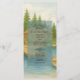 Lake Tahoe Mountain Rustic Wedding Réception Menu et programme lumineux tout en une carte Ce menu et programme capte le charme du lac Tahoe avec ses pins, son lac serein et ses éléments rustiques de lodge. Parfait pour les réceptions de mariage de destination alpine. Facilement personnalisable pour convenir à votre événement. Les textures d'aquarelle assistée par l'IA améliorent sa beauté. Les références aux médias sociaux peuvent générer une petite commission sans frais supplémentaires pour vous.