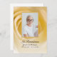 Souvenez-vous de votre bien-aimé et célébrez leur vie avec l'élégant programme de commémoration des funérailles de la Fleur de Rose blanche. Cette ligne de temps personnalisée fleurie service hommage de mort présente une photo florale de gros plan de pétales de fleurs roses couleur crème blanc cassé avec une superposition en dégradé blanc. Customisez-le avec une photo du défunt, les détails personnels et l'ordre de cérémonie de leur célébration de la vie église service.