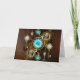 Turquoise lenses with antique watch with brass gears and golden keys on rusty, brown background. Steampunk style.