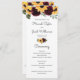 Ce programme de tournesol rustique et de mariage rose est parfait pour une cérémonie de jardin extérieur. Il dispose de magnifiques tournesols aquarelle et de roses avec une végétation verte sauge. Il est parfait pour un mariage de jardin ou un mariage de grange de campagne. Le jeu de couleurs jaune, bordeaux et vert sauge est une belle palette de couleurs pour une fin d'été ou mariage de automne. Pour plus de personnalisation, cliquez sur le lien "customiser plus" et utilisez notre outil de conception pour modifier ce modèle.