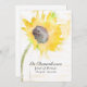 Souvenez-vous de votre bien-aimé et célébrez leur vie avec le joli Sunflower Jaune dans Vase Watercolor Funeral Memorial Service Program. Cette ligne de temps joyeuse fleurie service de tribut de mort présente une photo florale peinte à l'aquarelle d'une fleur de tournesol jaune sur une tige verte dans un vase en verre avec un arrière - plan blanc. Customisez-le avec les détails personnels et l'ordre de cérémonie de leur célébration de la vie église service.