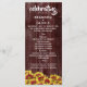 Ajoutez une touche de charme vintage à votre jour de mariage avec ce programme à thème floral rustique, qui présente le service de mariage et le cortège avec un mélange de mini tournesols à deux tons éclatants qui fleurissent à l'automne, posés sur une clôture patinée par les intempéries. Personnalisez avec les noms des mariés, le lieu de la réception, la date, les détails du service et le cortège. Parfait pour les thèmes de mariage rustiques et automnaux !