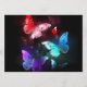 Trois papillons lumineux, rouges, violets, verts, texturés, nocturnes sur arrière - plan noir lumineux.