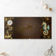 arrière - plan en bois Brown avec mer, crête mécanique, volant antique, ancre dorée et divers engrenages en or et laiton. Style Steampunk.