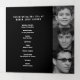 Simple carré graphique moderne de programme funéraire en forme de monotone noir et blanc. Remplacez l'exemple de texte et douze photos de l'espace réservé par vos propres photos spéciales et votre ordre mémorial, nécrologie, lecture ou poème, et les accusés de réception, et les informations personnelles. D'autres articles de souvenir de conservation funéraire correspondants sont disponibles. Conception par www.mylittleeden.com