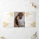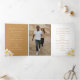 Programme de mariage d'art botanique Frangipani en or blanc avec 2 photos en pleine page. Personnalisez ce programme triplé mariage avec vos propres détails de cérémonie de mariage. Fleurs d'aquarelle tropicale frangipani blanches simples avec centres dorés sur blanc. Autres éléments mariages correspondants disponibles. © Couleur d'aquarelle d'origine, peinture et design de Sarah Trett pour www.mylittleedenweddings.com sur Zazzle.
