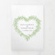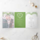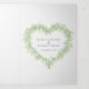 L'art botanique dessiné à la main par Mistletoe dans un programme de mariage en forme de coeur avec 2 photos en pleine page. Personnalisez ce programme triplé mariage avec vos propres détails de cérémonie de mariage. Une ligne d'art botanique simple encerclant vos propres initiales monographiques en vert et gris sur blanc. Autres couleurs et articles mariages correspondants disponibles. © Dessin et dessin original de Sarah Trett exclusivement pour www.mylittleedenweddings.com sur Zazzle.