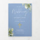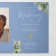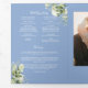 Un élégant programme de mariage de messe complète catholique avec de la verdure florale sur un fond bleu stylé. Conçu par Thisisnotme©