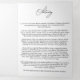Sophisticated trifold funeral program template with a clean white background and elegant black script typography, designed to create a timeless and dignified memorial keepsake. This layout includes space for an obituary, thank you message, order of service, memorial poem, two large photo placements, and a five photo collage space, allowing families to beautifully showcase cherished images alongside meaningful tributes. The high-contrast black and white design conveys a sense of grace and reverence, making it a heartfelt choice for honoring a loved one’s memory and providing guests with a lasting remembrance of a life well lived.