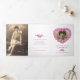 Programme funéraire ordre de service porte le coeur floral de l'émission funéraire d'art d'oublier-me-pas-fleurs en blanc, rose-rouge, rose, avec des touches de jaune et vert sur le papier blanc. Il vous suffit de remplacer l'exemple de texte et les supports photo par vos propres photos et informations spéciales. Dessin original encré et aquarelle d'illustration et design par Sarah Trett pour www.mylittleeden.com (les photos ne sont que des images d'espace réservé à remplacer par les vôtres).