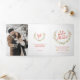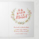 L'aquarelle de la couronne fleurie de Noël avec les éléments des baies rouges, des mistléorès, des cônes de pin, des fleurs rouges et des branches. Étoile rouge, verte et jaune, dessin floral festif et aquarelle de linge clair programme de mariage d'hiver de Noël. Personnalisez ce programme de mariage d'hiver avec vos deux photos, noms, date, détails mariages et merci. © Couleur d'aquarelle d'origine, peinture et design par Sarah Trett pour www.mylittleedenweddings.com