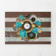 Programme Trois Volets Steampunk Clock and Turquoise Roses on Striped