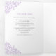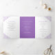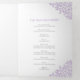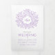 Programme de mariage d'art botanique à feuilles violettes dessinées à la main avec vos propres sections histoire d'amour et souvenir. Personnalisez ce programme triplé mariage avec vos propres détails de cérémonie de mariage, les noms de fête, l'histoire d'amour et les dédicaces. Un design simple de feuilles violettes encerclant vos propres initiales monographiques et sur blanc et violet. Autres couleurs et articles mariages correspondants disponibles. © Dessin et dessin de la feuille d'origine par Sarah Trett pour www.mylittleedenweddings.com sur Zazzle.