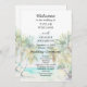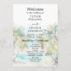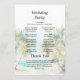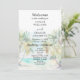 Cet élégant et beau programme de mariage aquarelle dispose d'une plage, du ciel bleu et des palmiers. Le texte combine écriture manuscrite et polices sans serif pour un look élégant et moderne. Il est parfait pour une plage d'été ou un mariage de destination tropicale.
